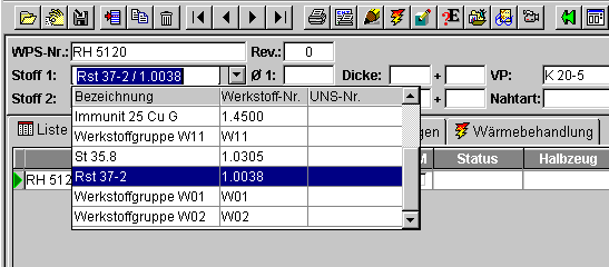 Abbildung 18: DropDownListBox für Werkstoffauswahl
