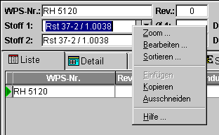 Der Menüpunkt Bearbeiten ruft das zur DropDownListBox gehörige Stammdatenfenster auf und positioniert den Cursor auf den aktuellen Datensatz. Auf diese Weise können Sie die Stammdaten Ihren Anforderungen entsprechend bearbeiten und anschließend in die Ausgangsmaske zurückkehren.