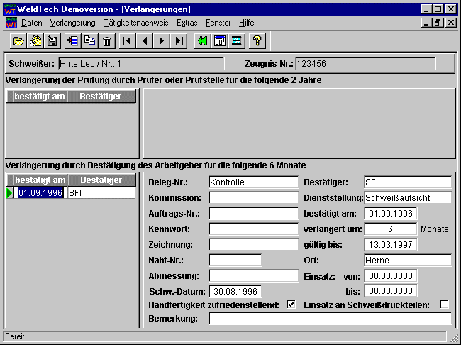 WeldTech 2.1.7 Verlängerung des Zeugnisses