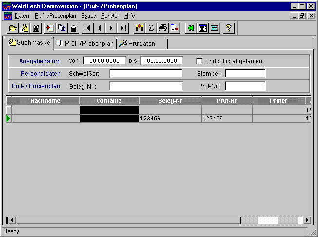 Nun kann die jeweilige Verlängerung vorgenommen werden. Durch die Angabe des Datums bestätigt am errechnet WeldTech automatisch die neue Geltungsdauer und nachdem die Verlängerung durchgeführt und abgespeichert wurde, erscheint die Zeugnis-Nr. des entsprechenden Datensatzes wieder schwarz eingefärbt in der Liste.