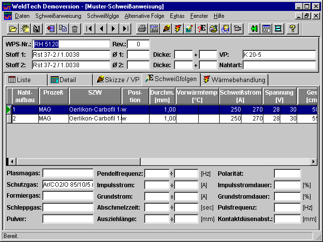 WeldTech 2.1.5 Arbeitsseite Schweißfolgen