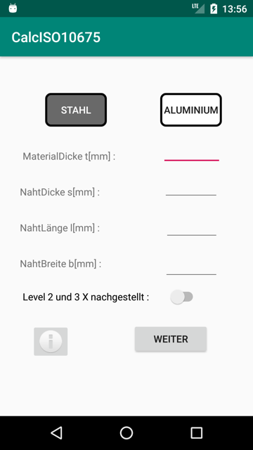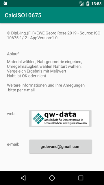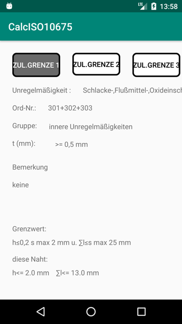 Die App berücksichtigt nur innere Unregelmäßigkeiten - äußere bitte mittels der App CalcISO5817 ermitteln.