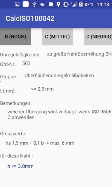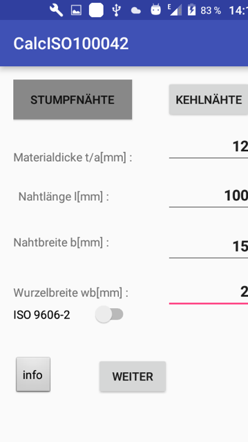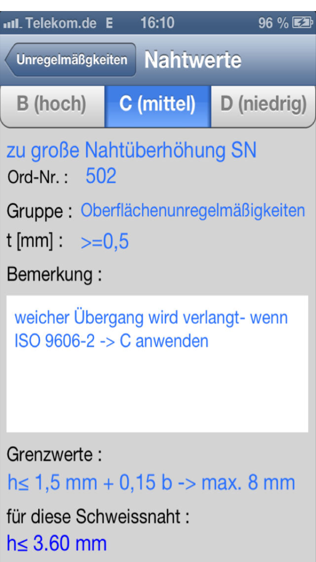 Diese Normwerte für die jeweils zu prüfende Naht zu ermitteln und anzuzeigen ist mittels dieser App schnell erledigt.