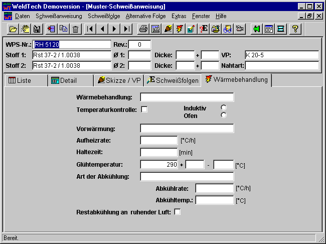 WeldTech 2.1.6 Arbeitsseite Wärmebehandlung